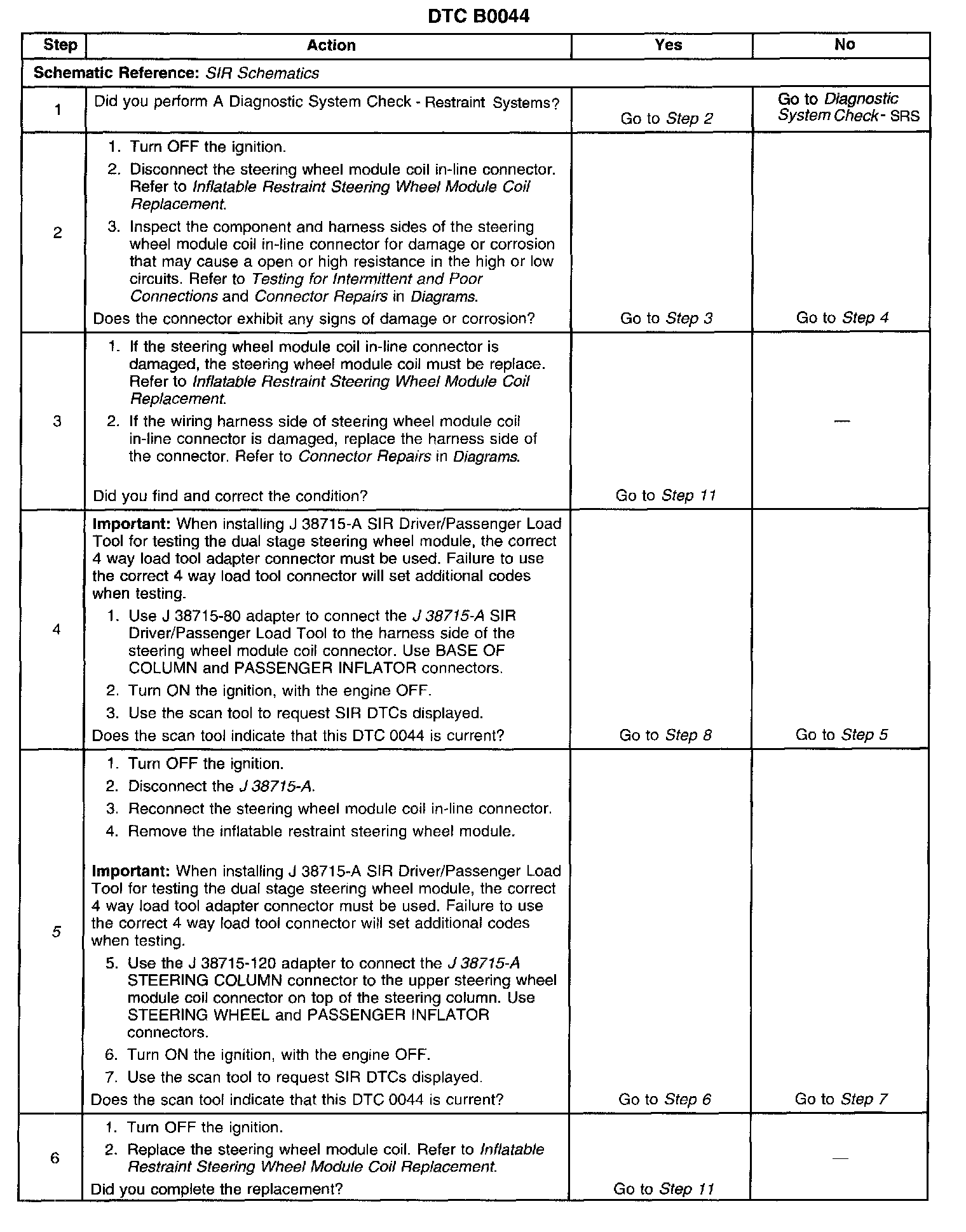 The number(s) below refer to the step number(s) on the diagnostic table.
