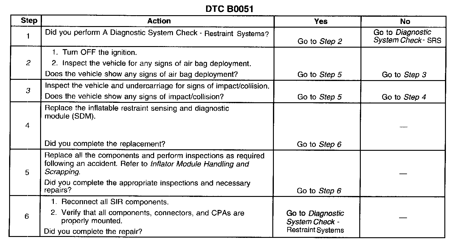 2. If the inflator modules has not deployed, DTC B0051 may have set falsely.