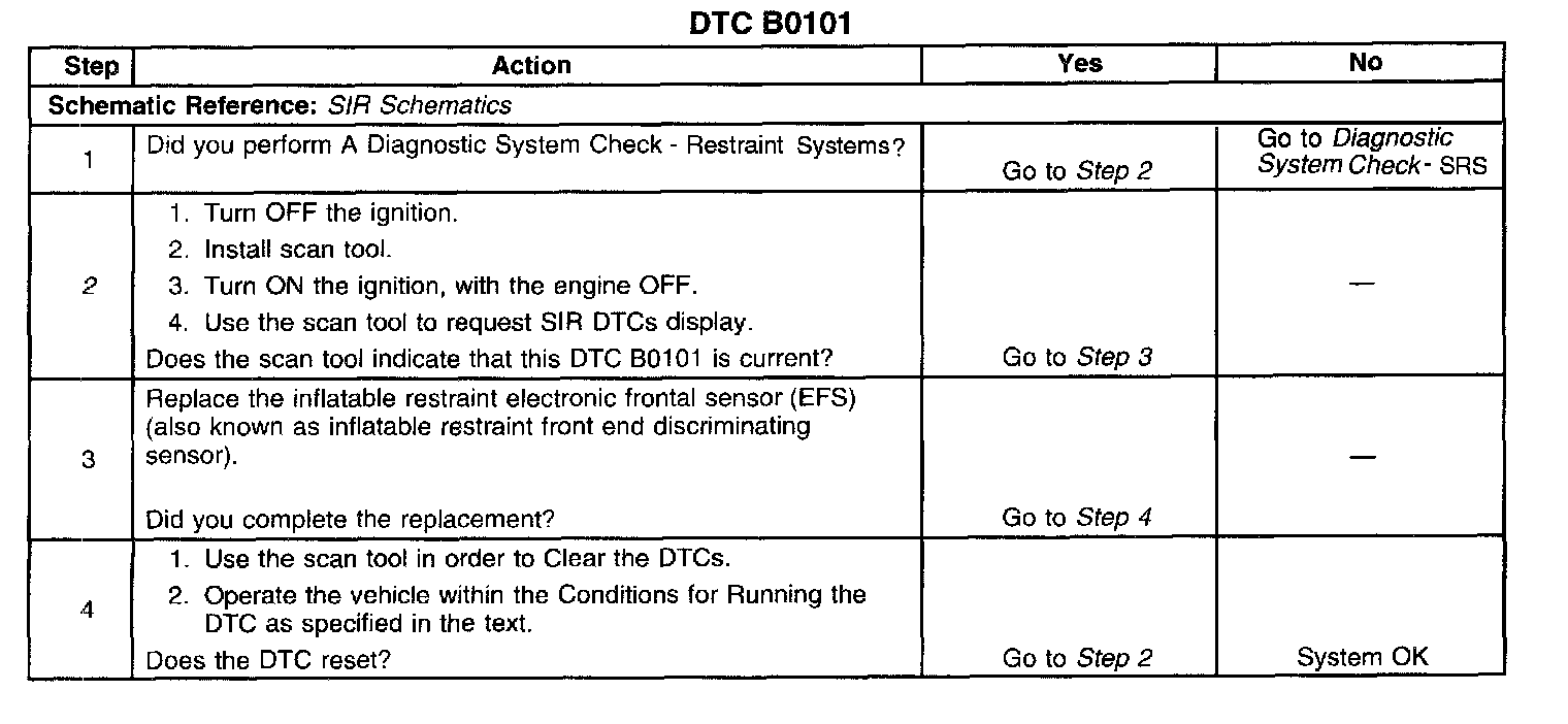 ^ The condition responsible for setting the DTC no longer exists and the scan tool Clear DTCs function is used.