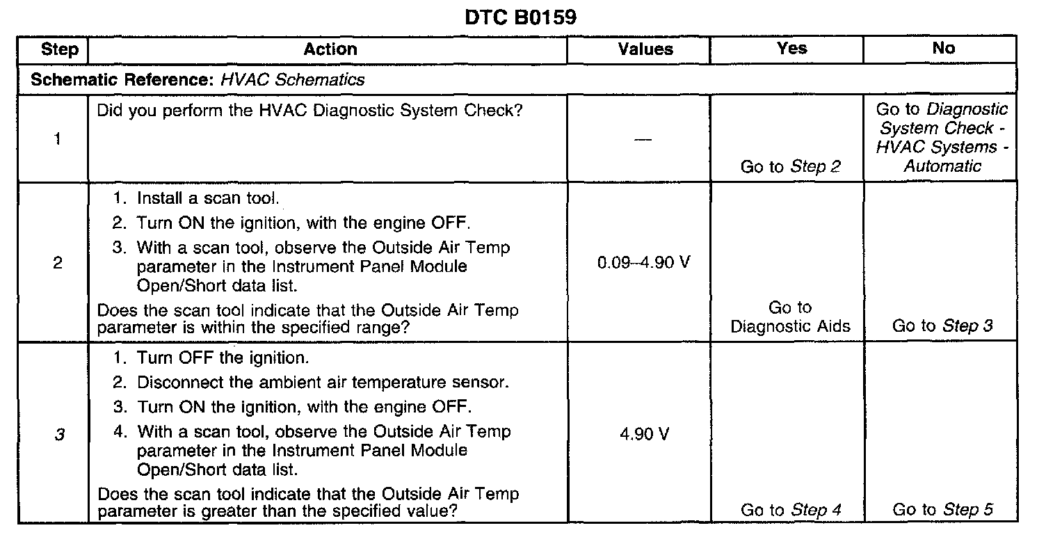 ^ A default value of 2.50 volts (128 counts) will be substituted for the ambient air temperature sensor data by the IPM. The Outside Air Temp. displayed on the scan tool is the default value. The Outside Air Temp displayed on the scan tool in the Open/Short Data list is the actual value.