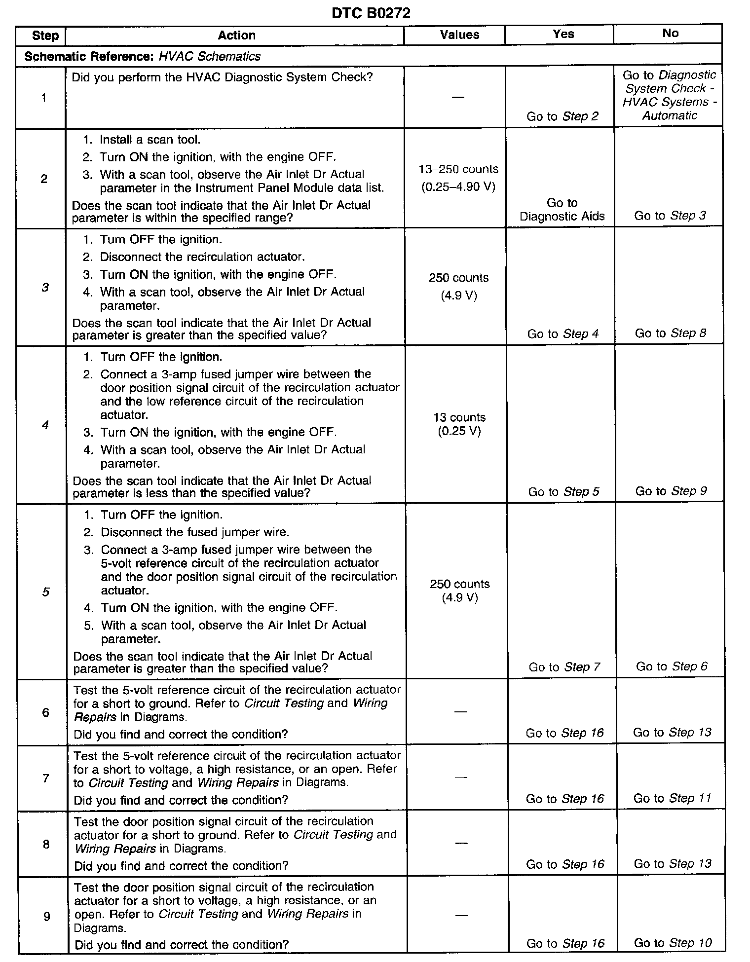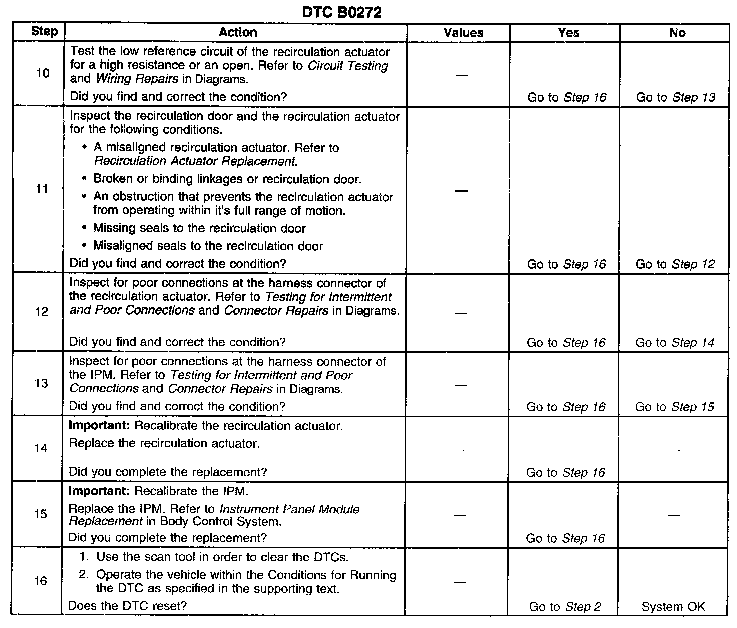 ^ If B0272 sets during a calibration/recalibration event the IPM will no longer issue commands to the actuator and will not perform a calibration/recalibration until the door position feedback fault is corrected.