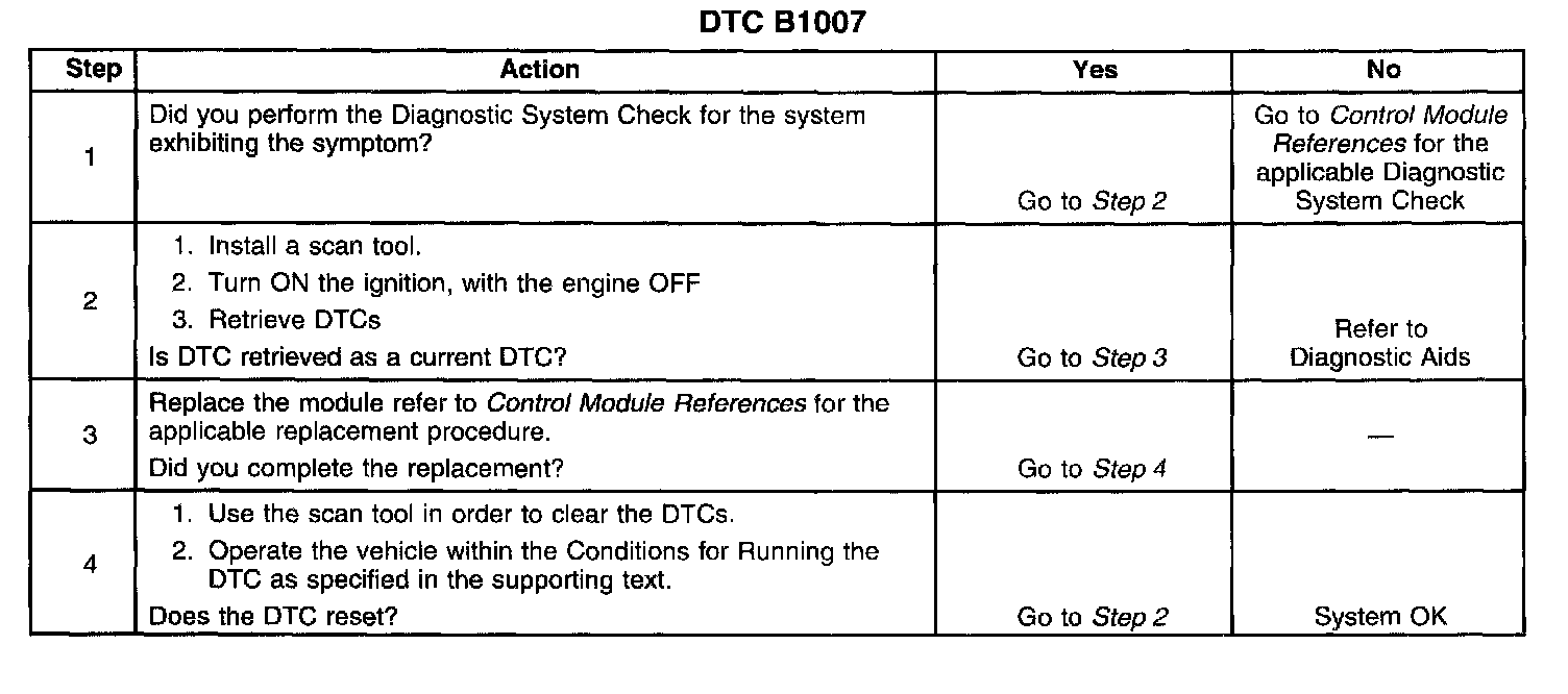 ^ This DTC may be stored as a history DTC with out affecting the operation of the module. It stored only as a history DTC and not retrieved as a current DTC, do not replace the module.
