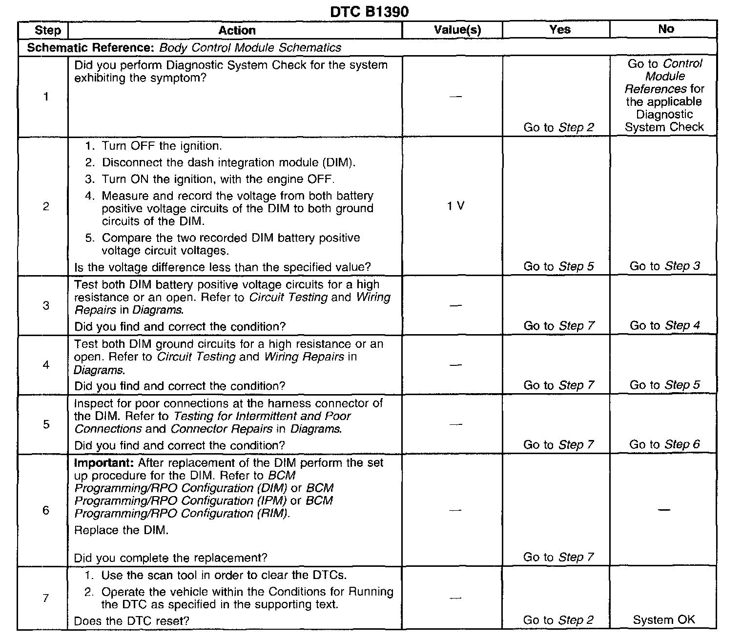 CIRCUIT DESCRIPTIONThe DIM has an internal battery voltage sensor and a reference voltage. The DIM compares these two voltages via the two battery positive voltage circuits every 300 milliseconds.