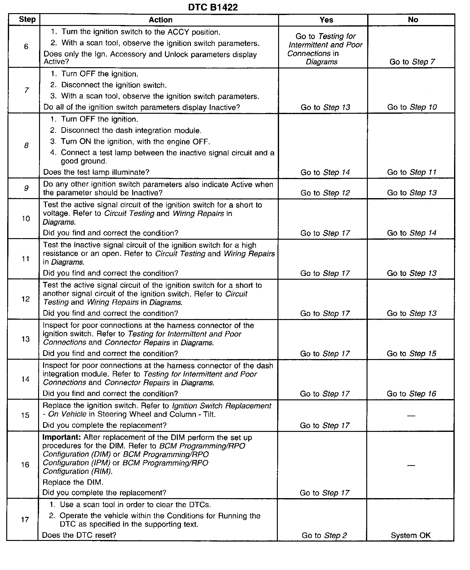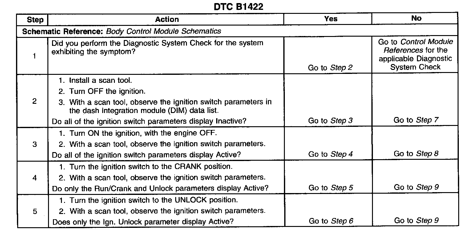 9. If any ignition switch parameters that should be inactive in the present ignition switch position are active, two ignition switch signal circuits may be shorted together.