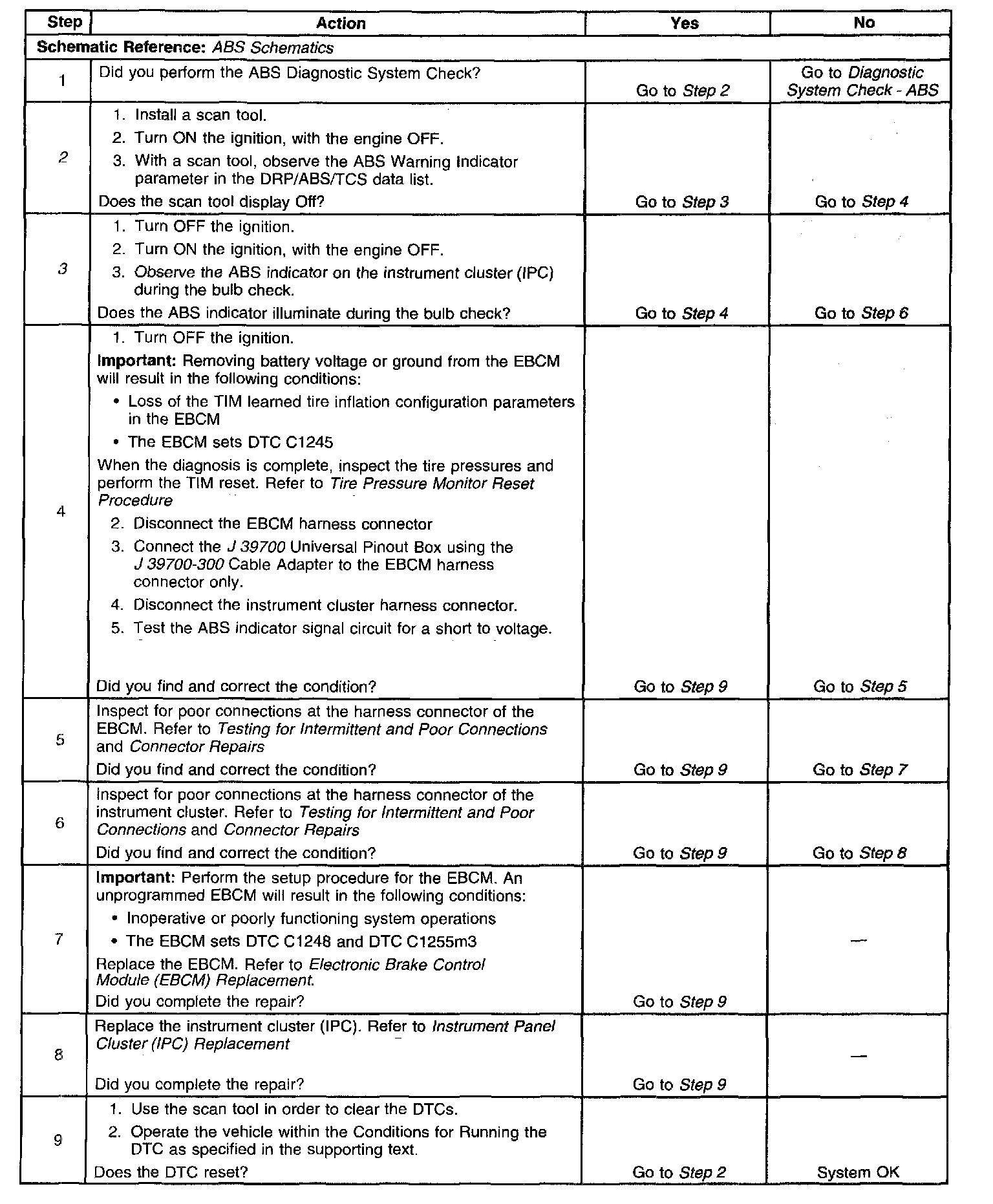 3. Ensure that the instrument cluster can operate the ABS indicator.