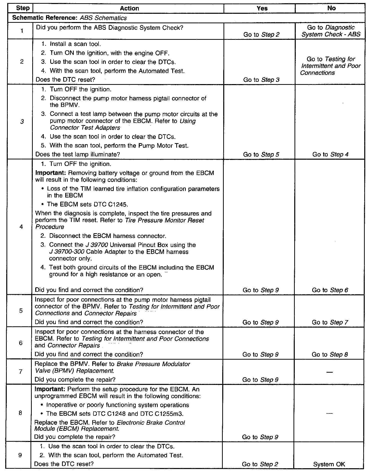 ^ The EBCM automatically clears the history DTC when a current DTC is not detected in 100 consecutive drive cycles.Diagnostic Aids The pump motor is integral to the BPMV. The pump motor is not serviceable.