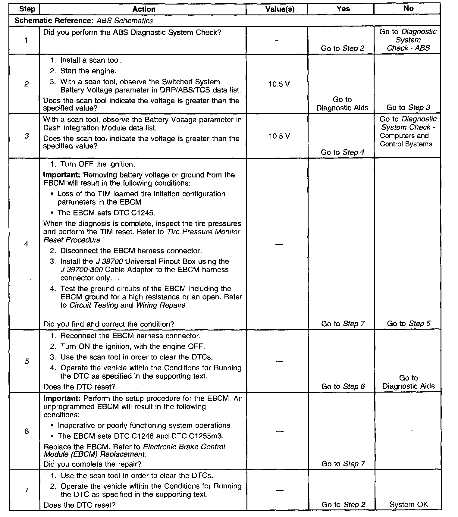 ^ The EBCM disables the ABS/TCS/VSES for the duration of the ignition cycle.