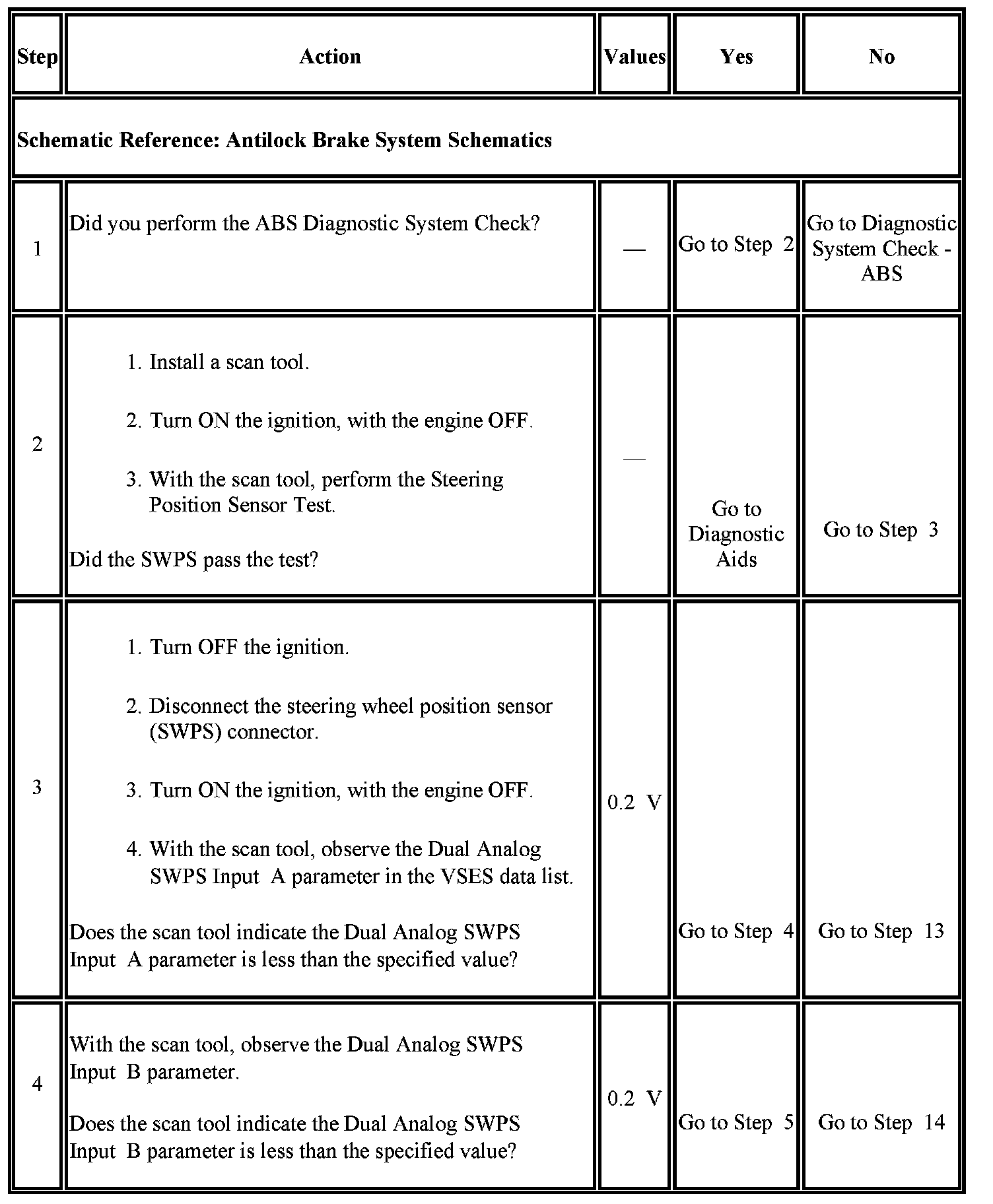 2. Perform the Steering Position Sensor Test in order to verify if the steering wheel position sensor (SWPS) is operating properly.