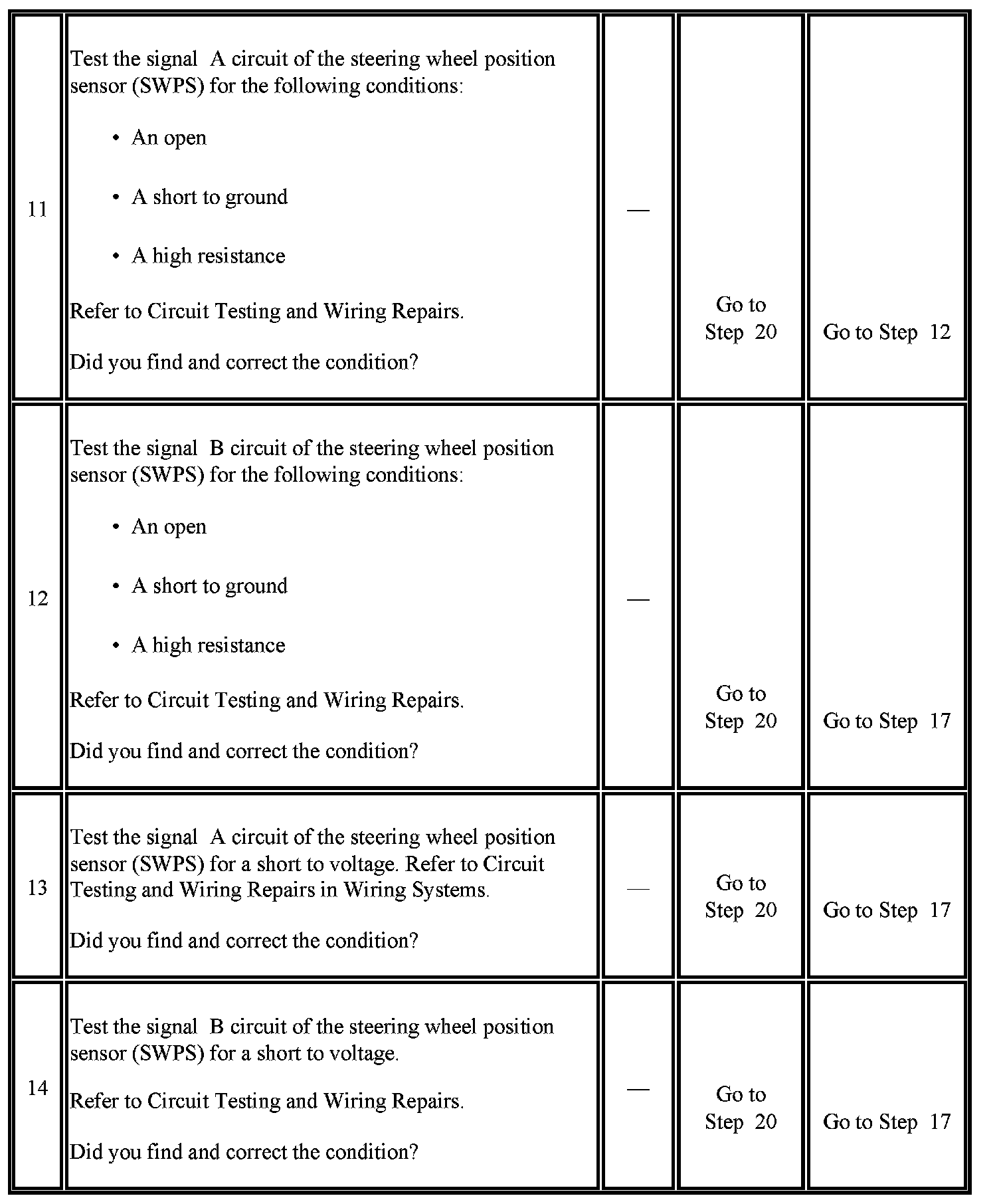 3. Tests for the proper operation of the steering wheel position signal A circuit in the low voltage range.