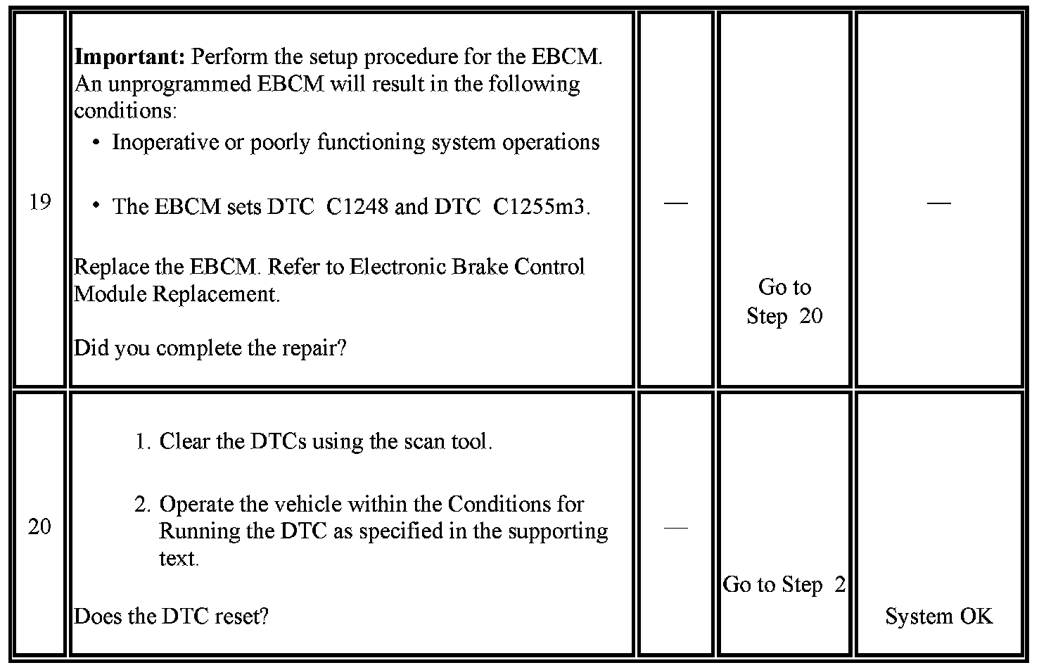 The numbers below refer to the step numbers on the diagnostic table.