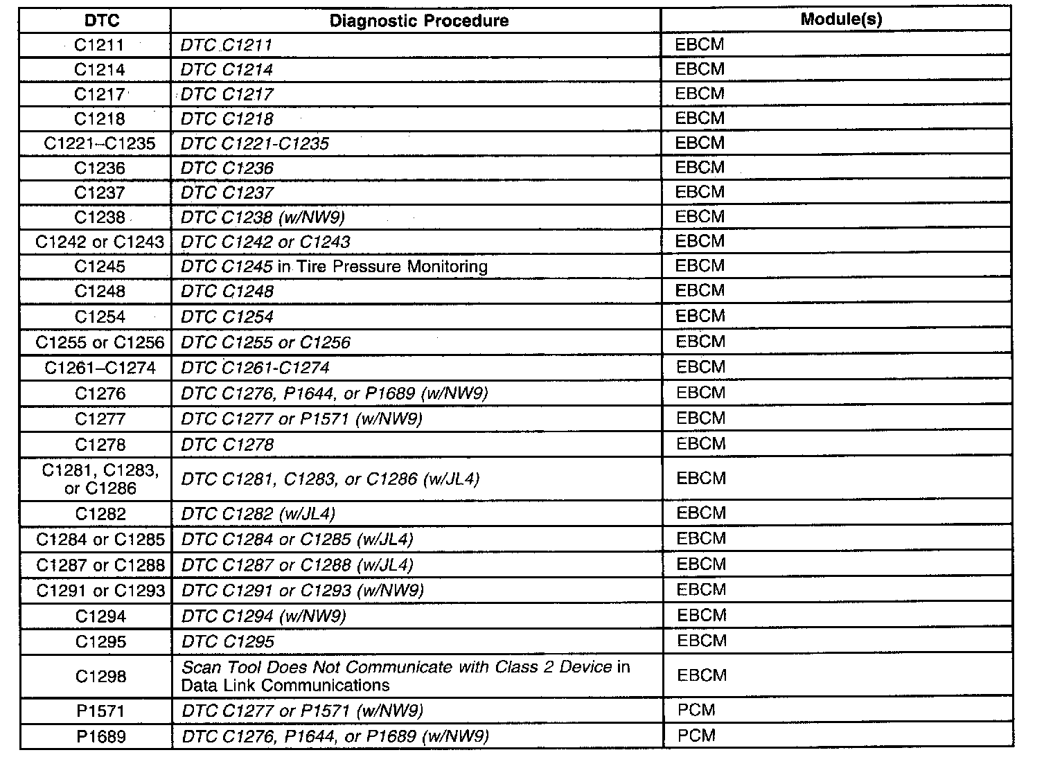 A L L Diagnostic Trouble Codes ( DTC )