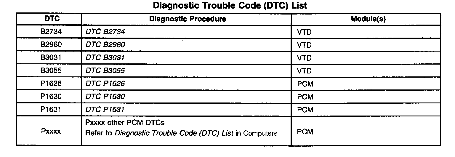 Diagnostic Trouble Code Descriptions
