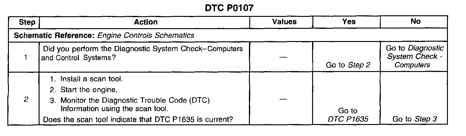 If the PCM detects a MAP sensor signal voltage that is excessively low, DTC P0107 will set.