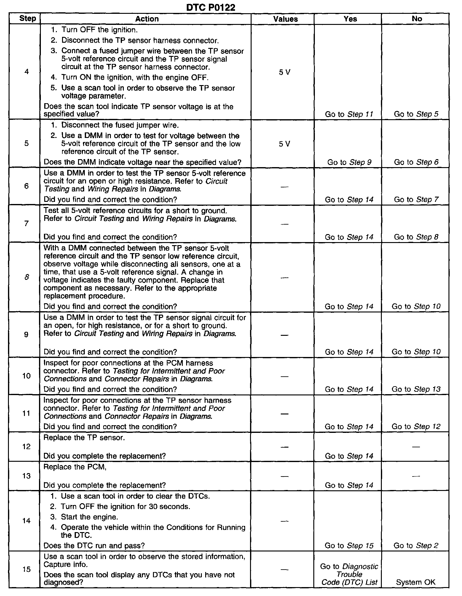 8. Malfunctioning components that share the TP sensor 5-volt reference circuit can cause a low voltage condition on this circuit.
