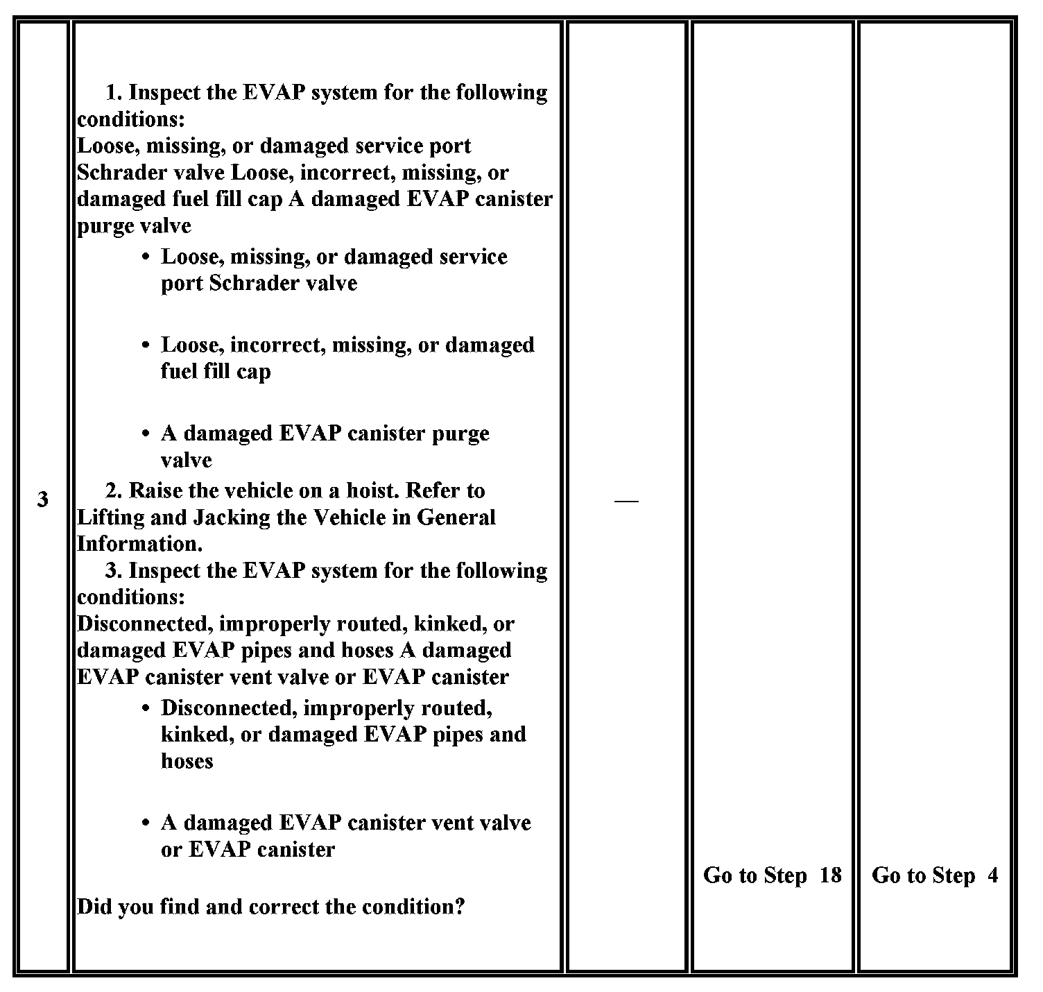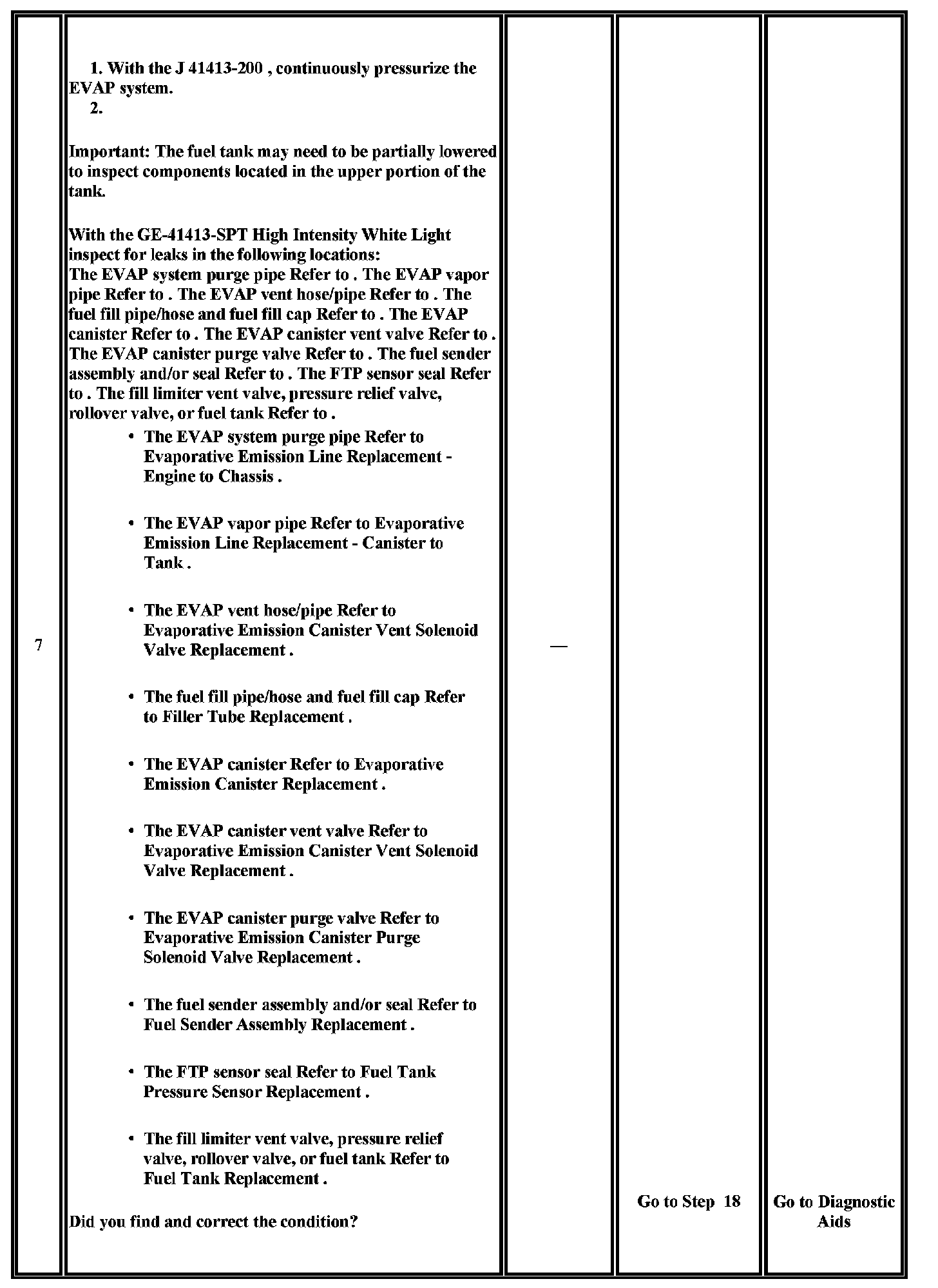 The numbers below refer to the step numbers on the diagnostic table.