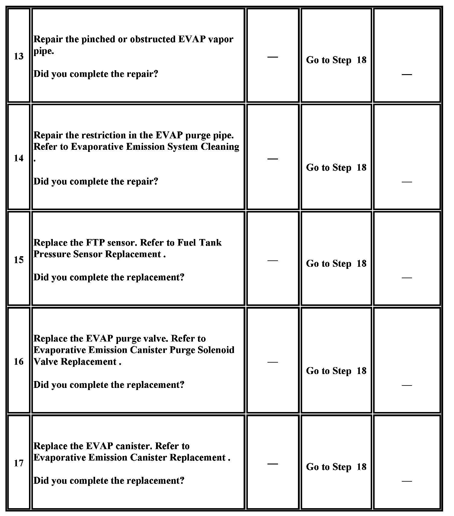 - A temporary blockage in the EVAP canister purge valve, purge pipe or EVAP canister could cause an intermittent condition. To repair a blockage in the EVAP system, refer to Evaporative Emission System Cleaning Service and Repair.