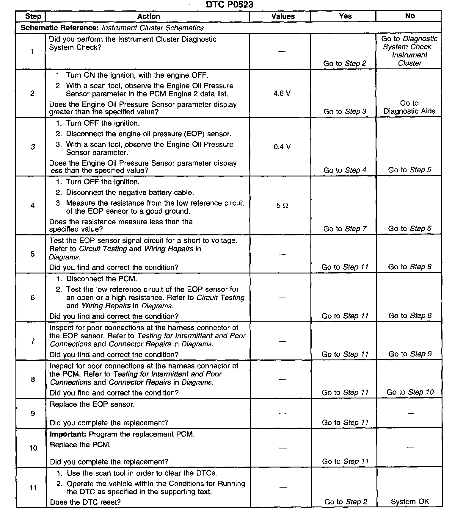 ^ The PCM detects that the EOP sensor signal circuit is greater than 4.6 volts.