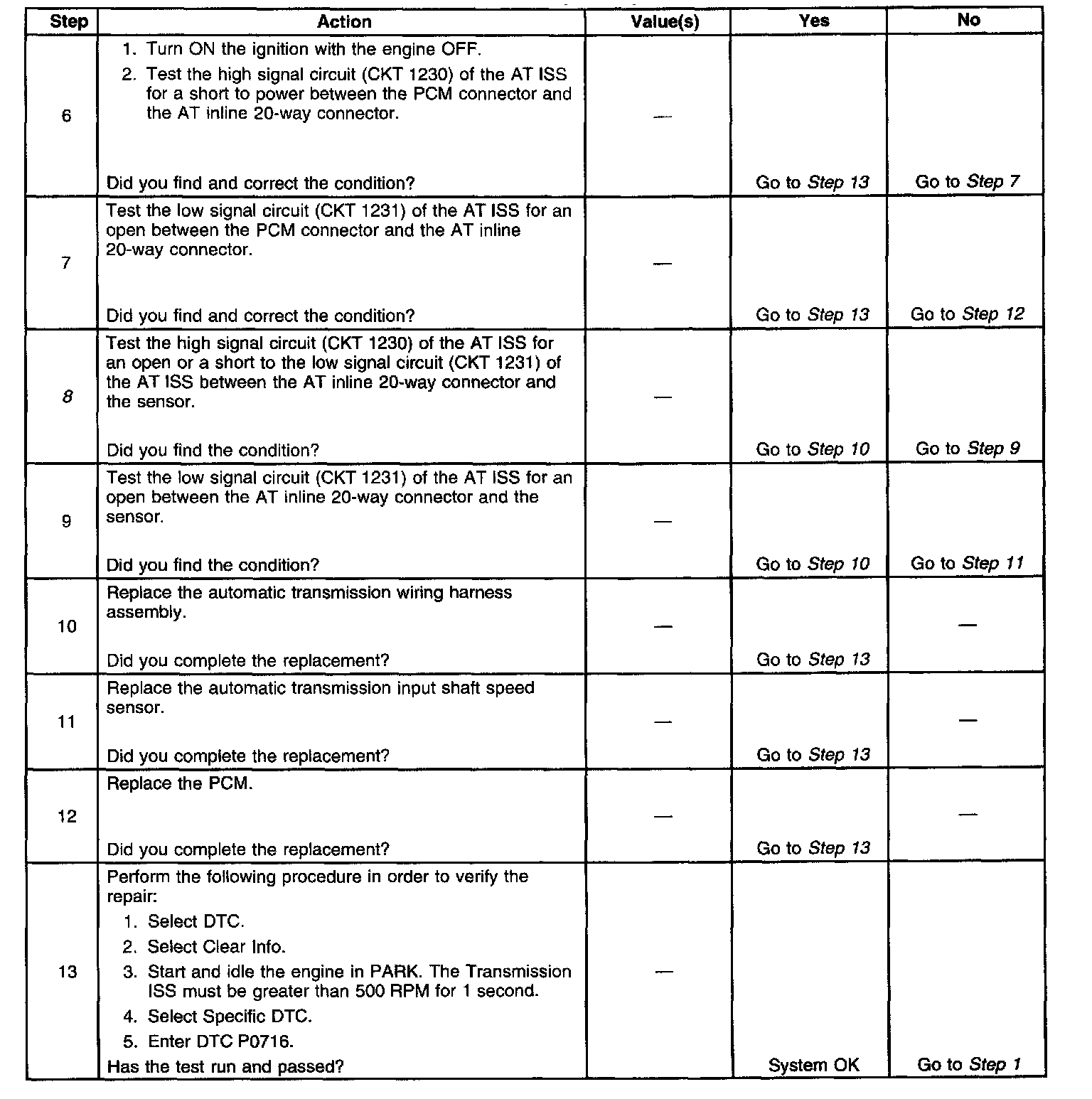 If the PCM detects an unrealistically large change in the AT ISS sensor high signal in a short period of time, then DTC P0716 sets. DTC P0716 is a type B DTC.