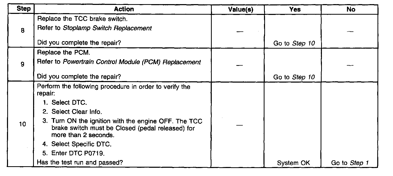 ^ The PCM stores DTC P0719 in PCM history.