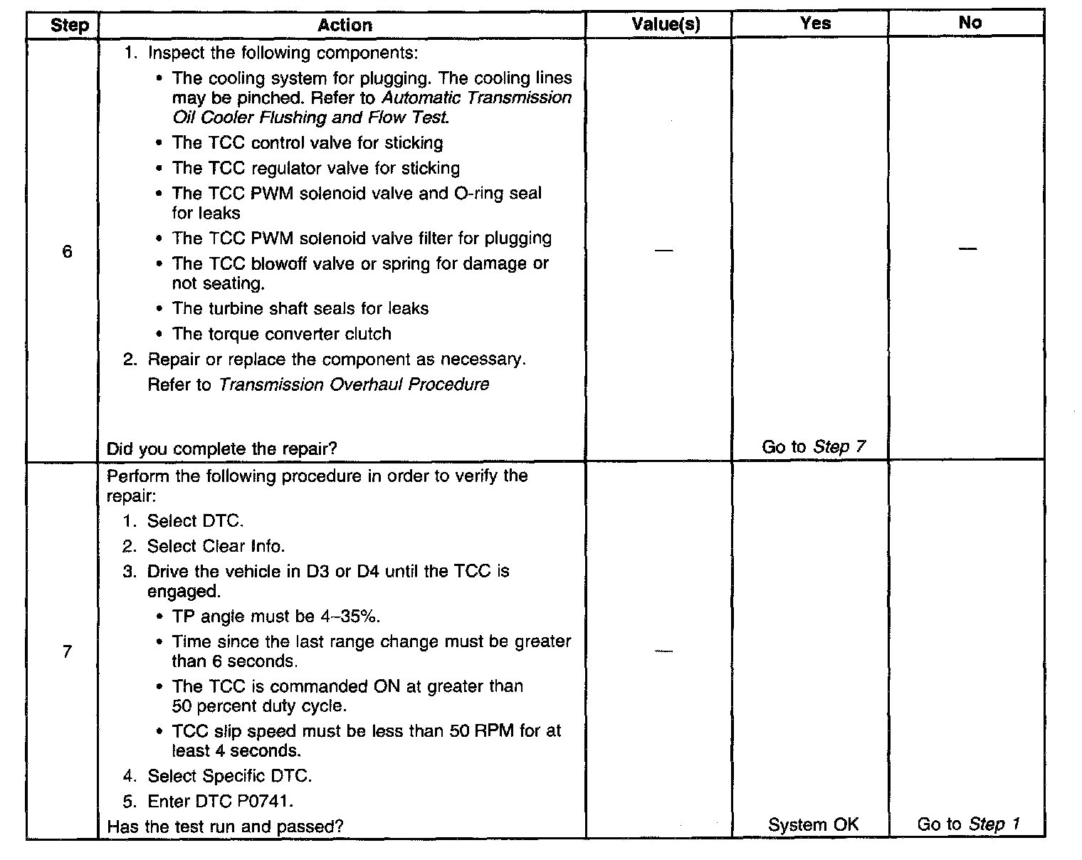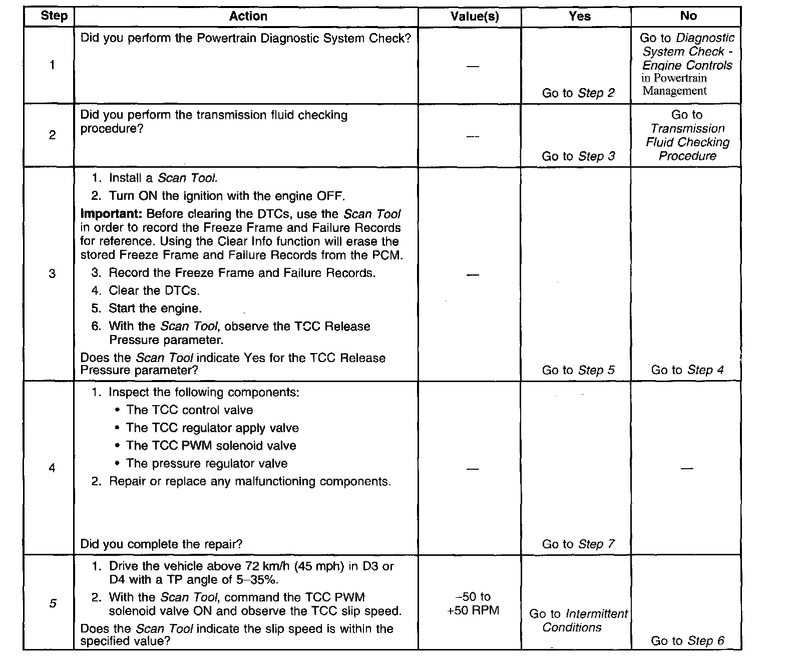 5. This step verifies that the TCC engages when commanded on by the Scan Tool.