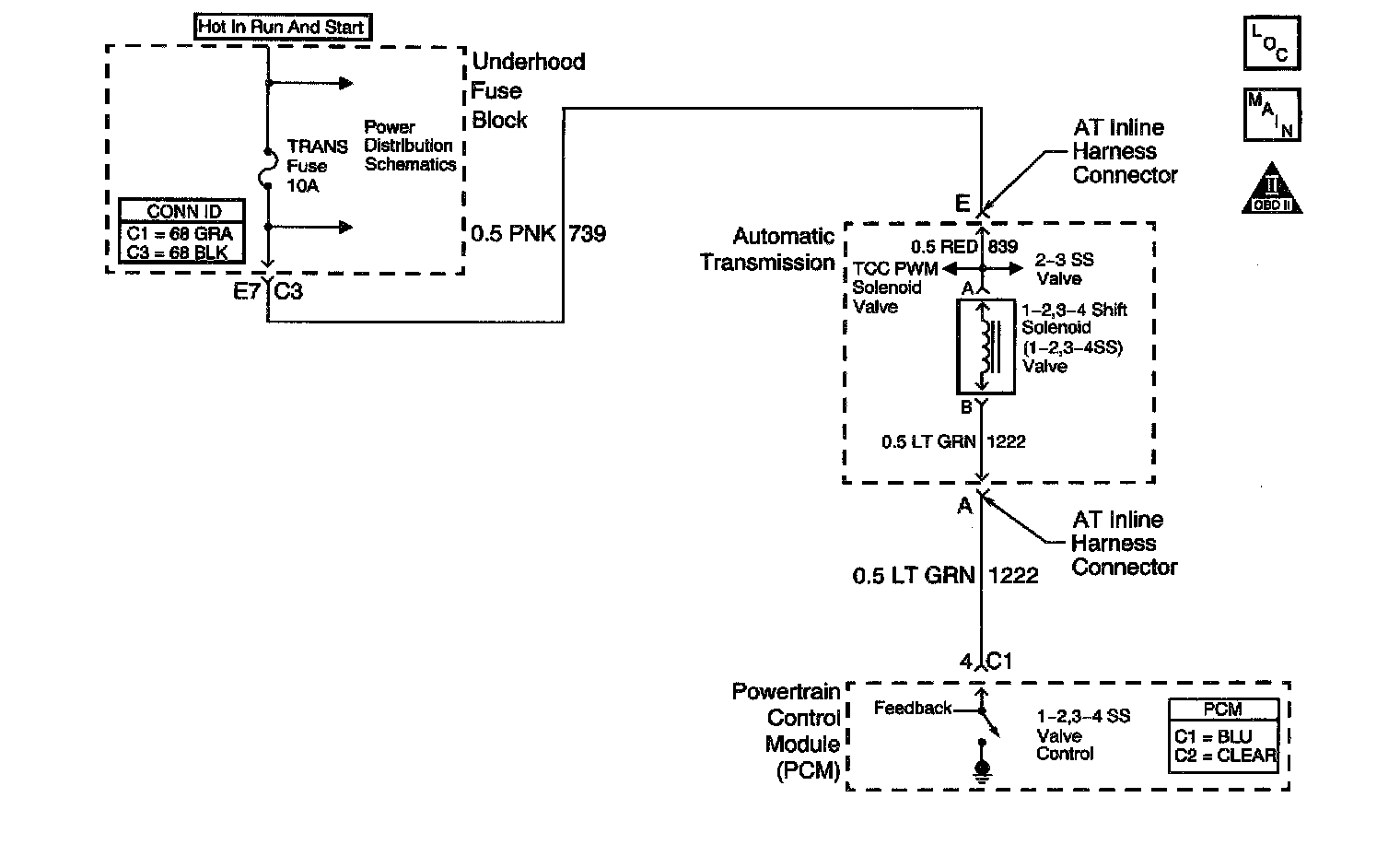 2. A short to ground in the power feed circuit to the solenoid ahead of the splice would open the fuse and set DTCs for other solenoids on the same circuit. An open in the same circuit would not open the fuse but, would set the other DTCs.