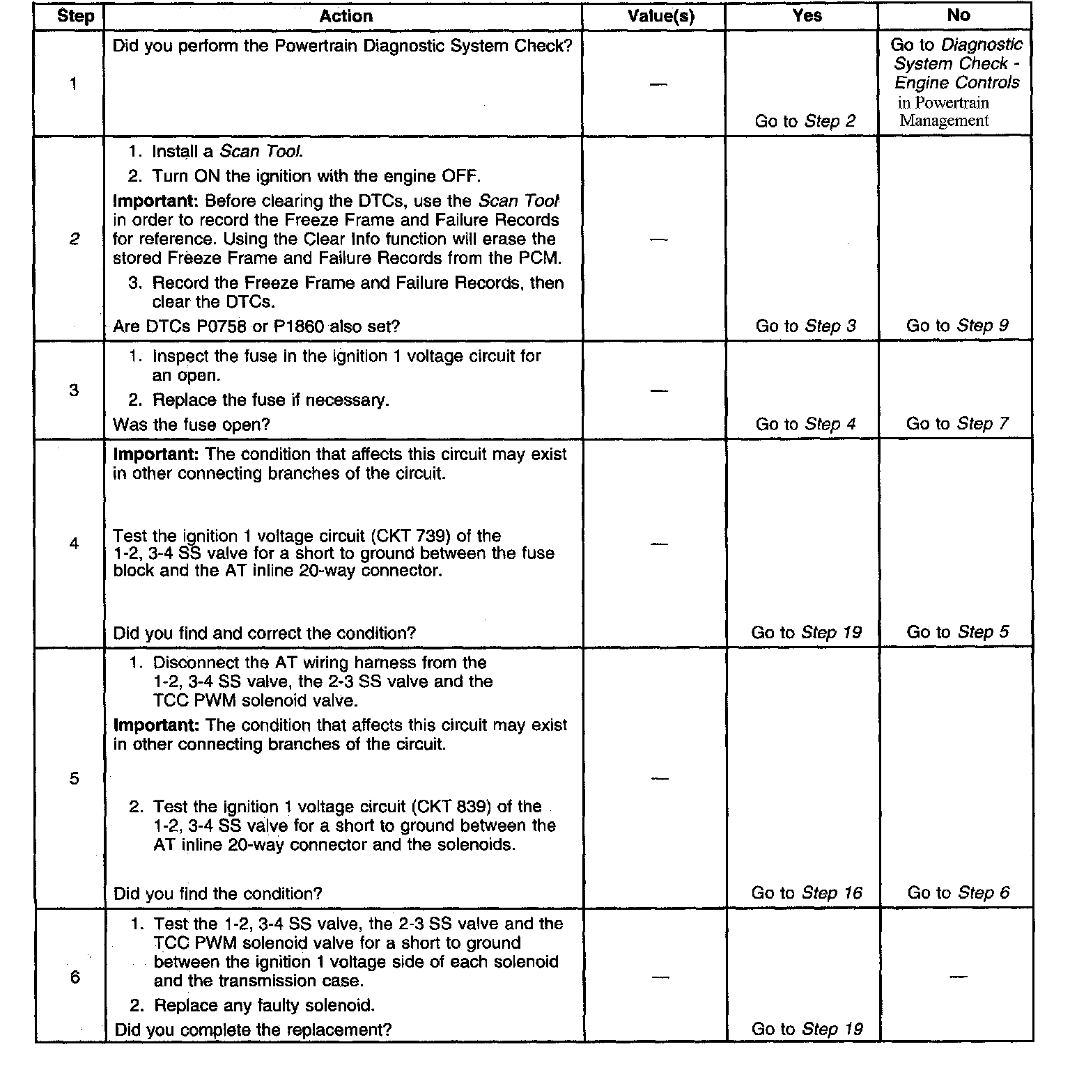 If the PCM detects a continuous open, short to ground or short to power in the 1-2, 3-4 SS valve circuit, then DTC P0753 sets. DTC P0753 is a type B DTC.