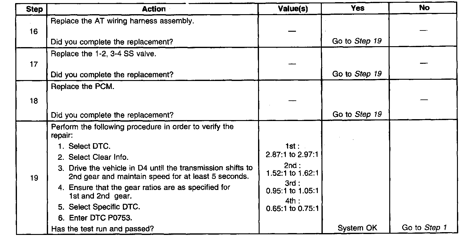^ The PCM stores DTC P0753 in PCM history during the second consecutive trip in which the Conditions for Setting the DTC are met.
