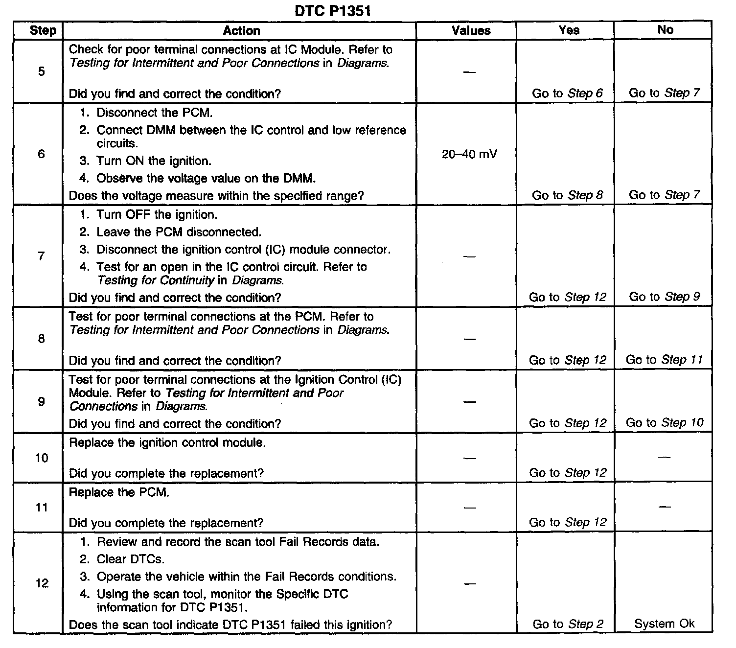 ^ The PCM detects an open in the IC control circuit.