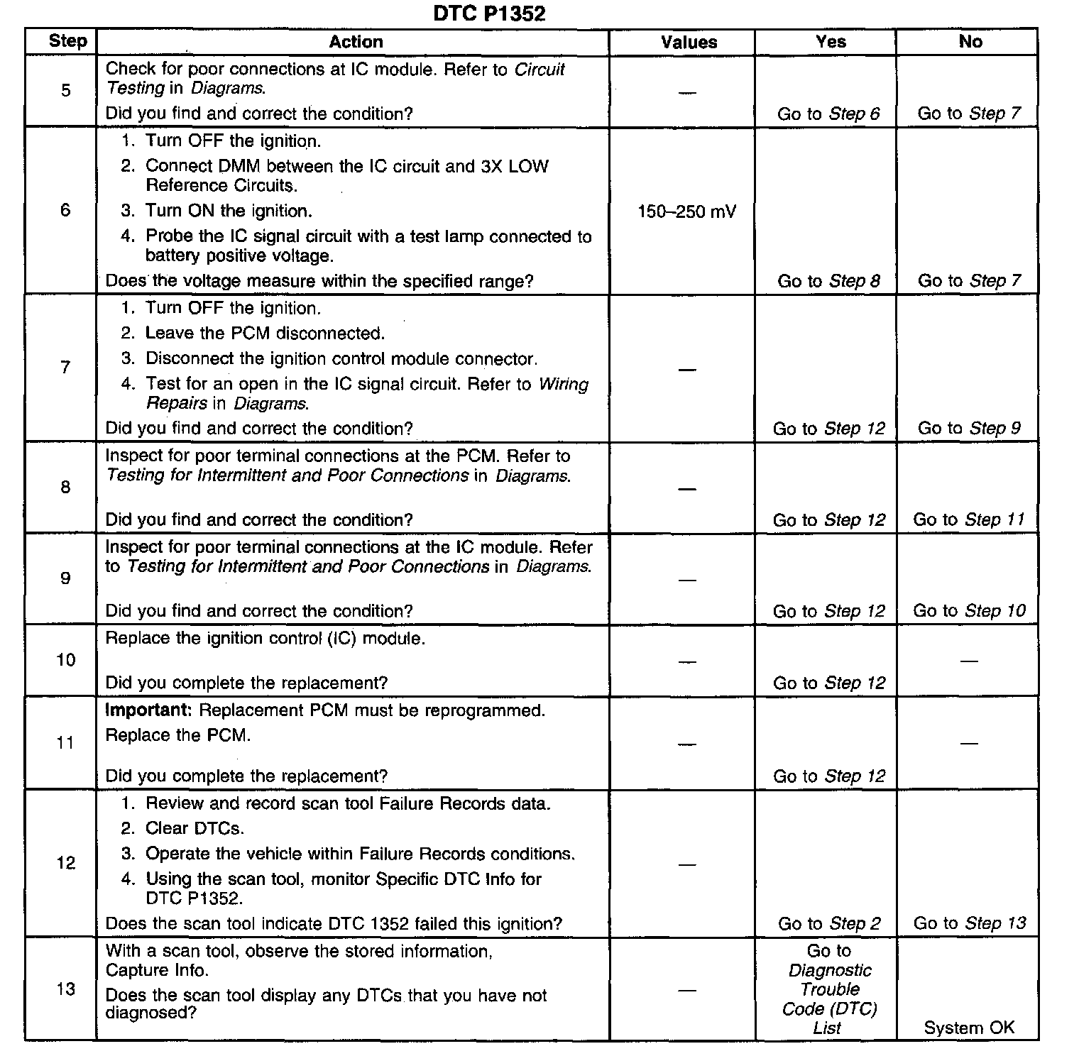 ^ The PCM detects an open circuit in the IC signal circuit.