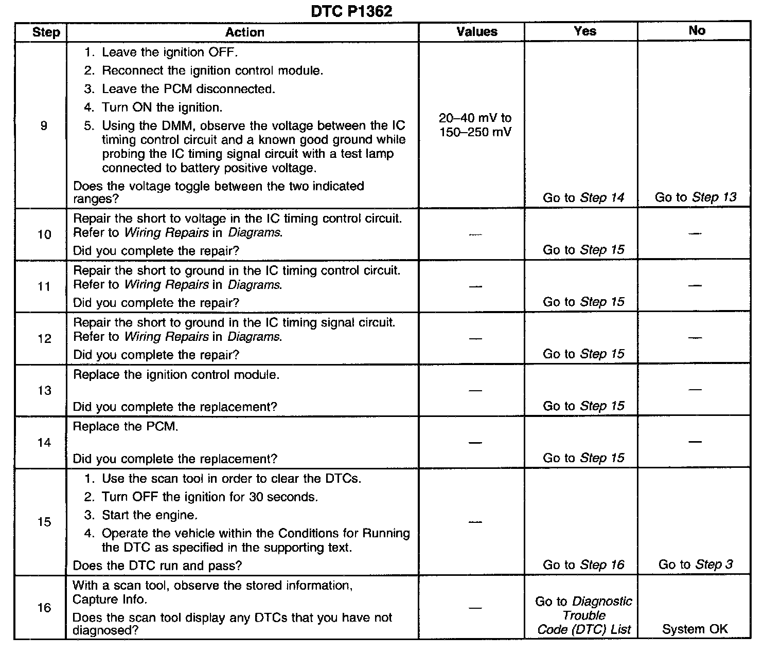 The number below refers to the step number on the diagnostic table.
