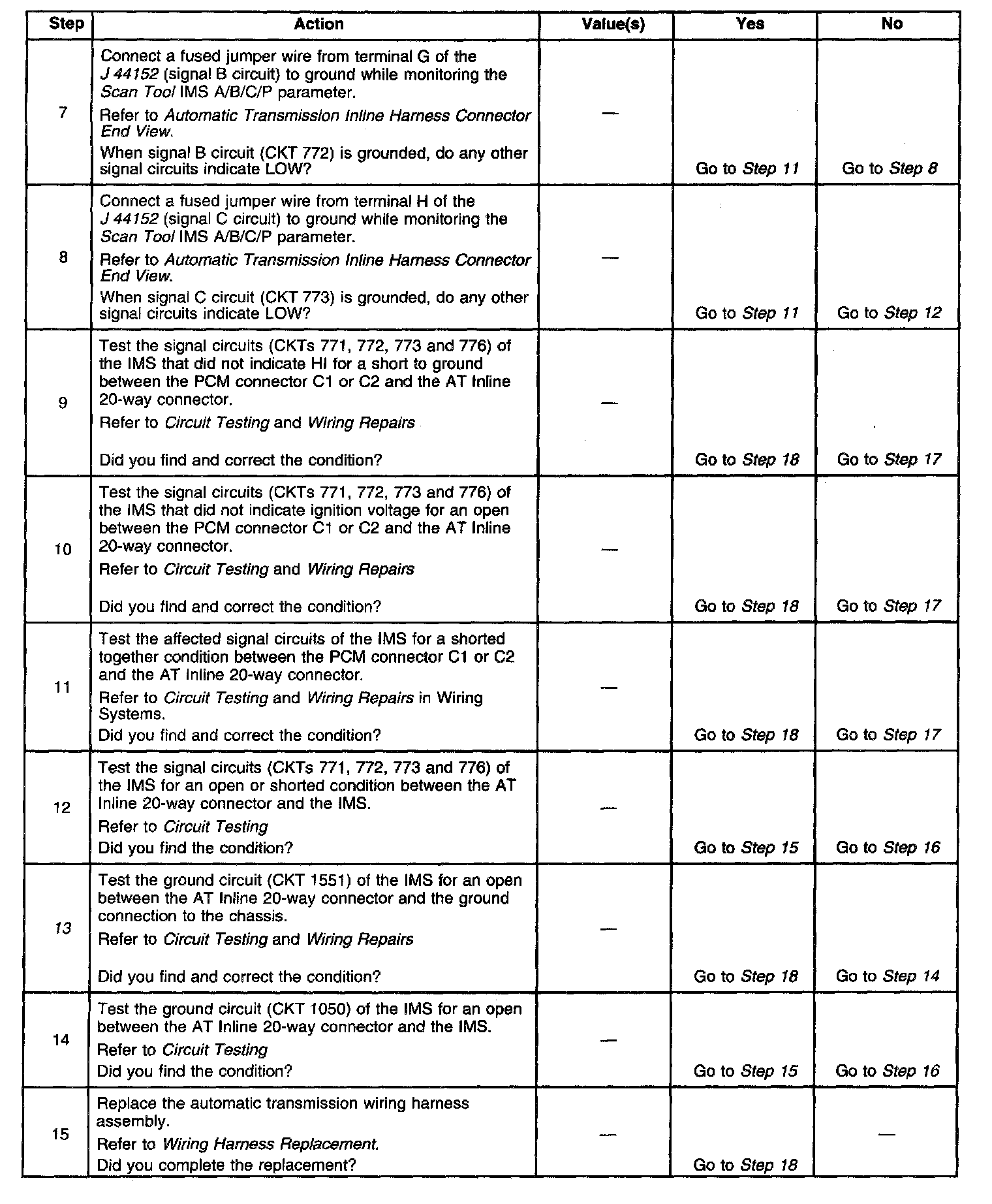 13. This step tests the internal transmission harness. If no fault is found in the harness, the fault will be in the switch.