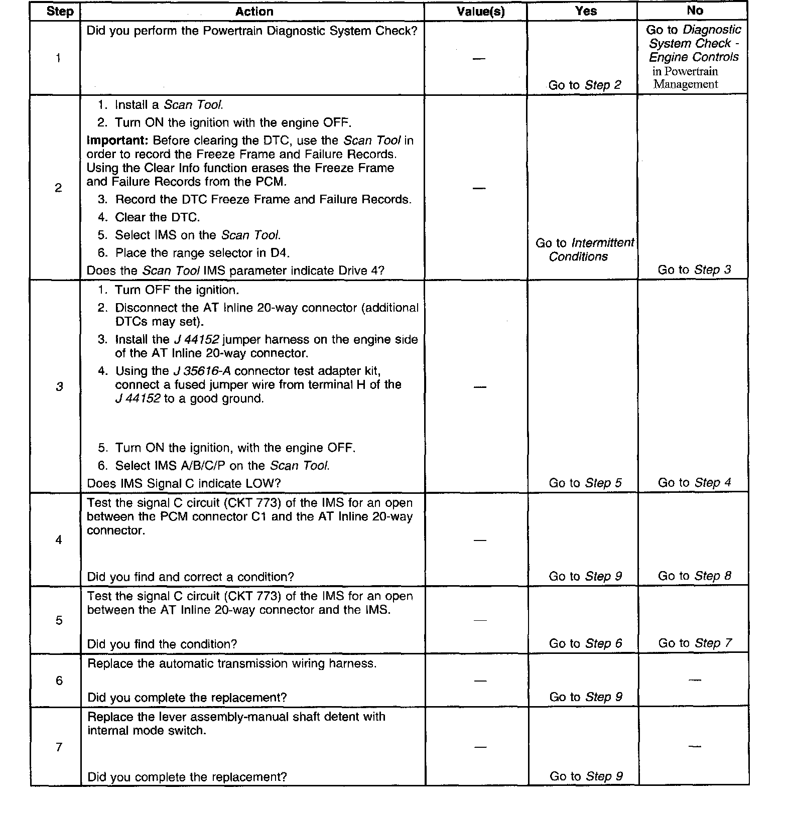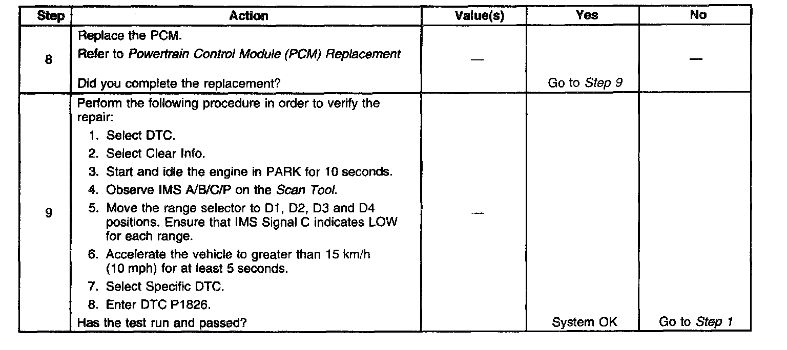 If the PCM detects that IMS Signal C is high while the vehicle is being driven in a forward gear, then DTC P1826 sets. DTC P1826 is a type C DTC.