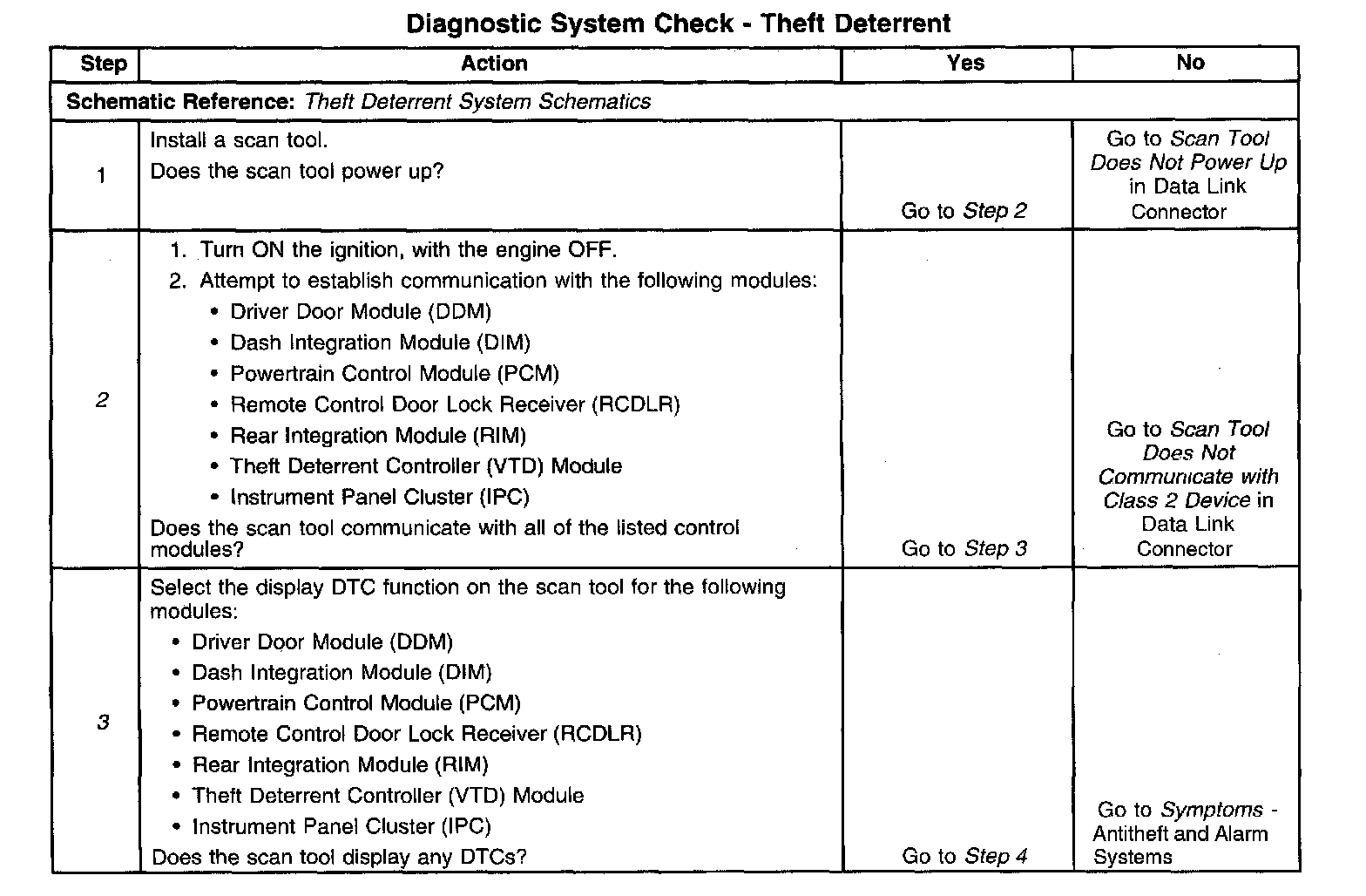 2. Lack of communication may be due to a partial malfunction of the class 2 serial data circuit or due to a total malfunction of the class 2 serial data circuit. The specified procedure will determine the particular condition.