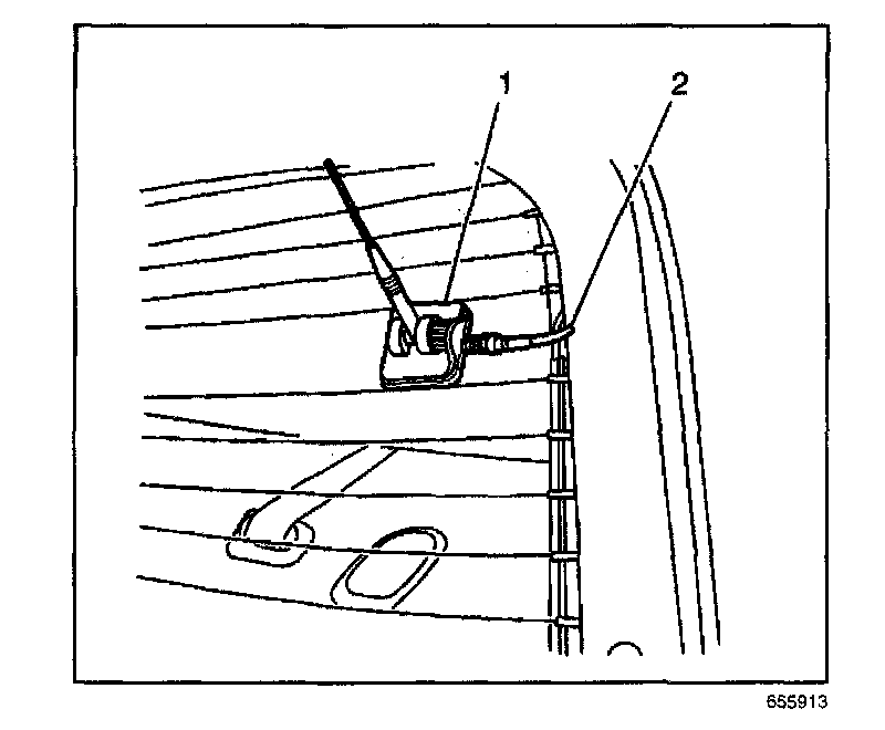 4. Remove the cellular antenna (1) from the exterior of the rear window using a small wide-bladed plastic tool in order to release the adhesive.