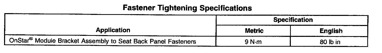 Fastener Tightening Specifications: