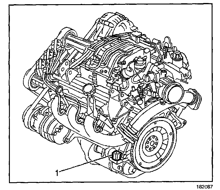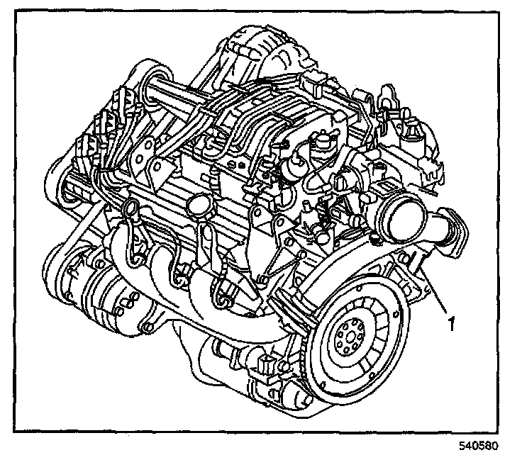 The primary location (1) of the VIN derivative for the 3800 engines is above the starter motor on the engine block.