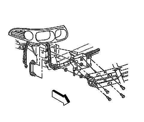 4. Remove the fasteners retaining the front bumper impact bar to the front bumper impact bar bracket.