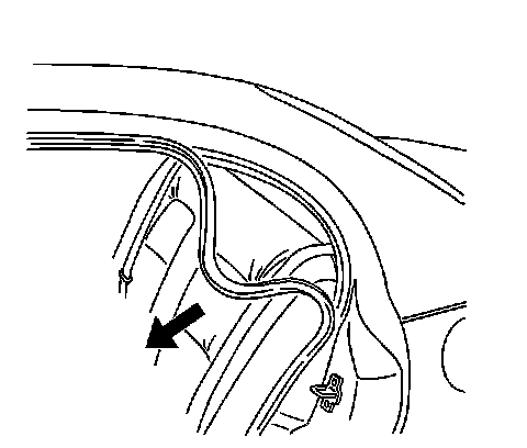 2. Pull the door opening moldings down in order to clear headliner and the rear quarter trim. Refer to Rear Door Opening Weatherstrip Replacement.