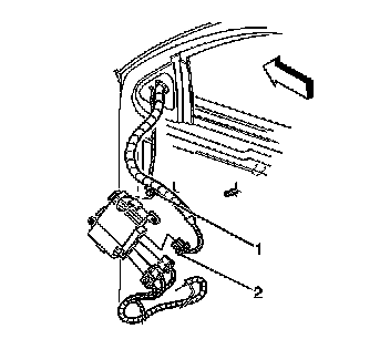 3. Remove the door trim panel in order to gain access to the power mirror wire harness connector (2).