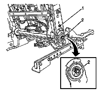 3. Slide the recliner rod (2) through the power seat back recliner motor and the recliner assembly.