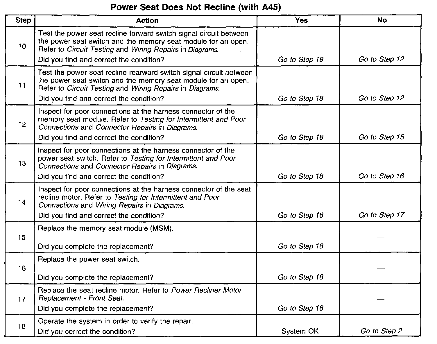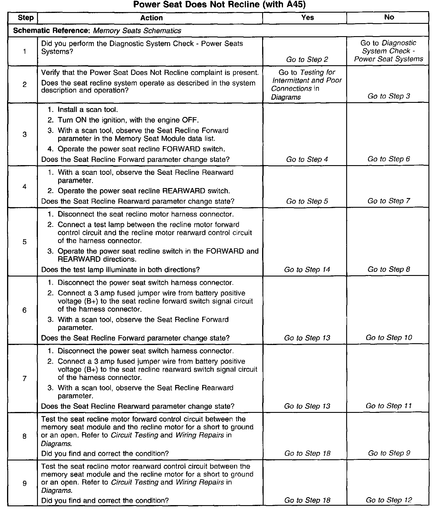 Power Seat Does Not Recline With RPO A45