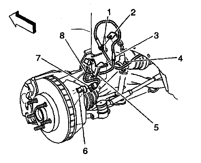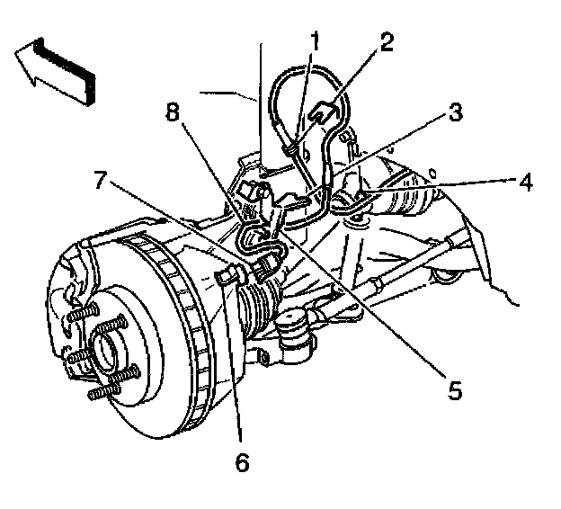 8. Install the wheel speed sensor connector (7) to the wheel speed sensor (6).
