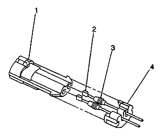 2. Install the connector (1) and terminal position assurance (4) to the engine side of the wire.