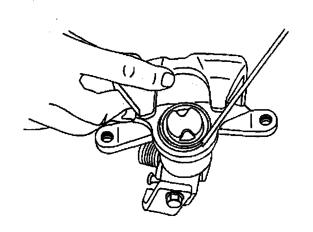 10. Inspect the operation of the integral park brake mechanism; rotate the park brake lever back and forth while observing the movement of the park brake mechanism actuator assembly in the caliper bore.