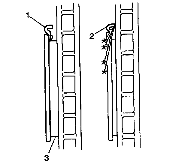 ^ Inspect both edges of the disc brake pad friction surfaces (3). The highest rate of wear normally occurs at the trailing edge of the disc brake pads.