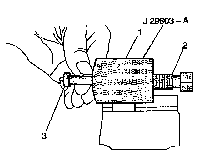 17. Back the clamping nut (1) out of the J29803-A.