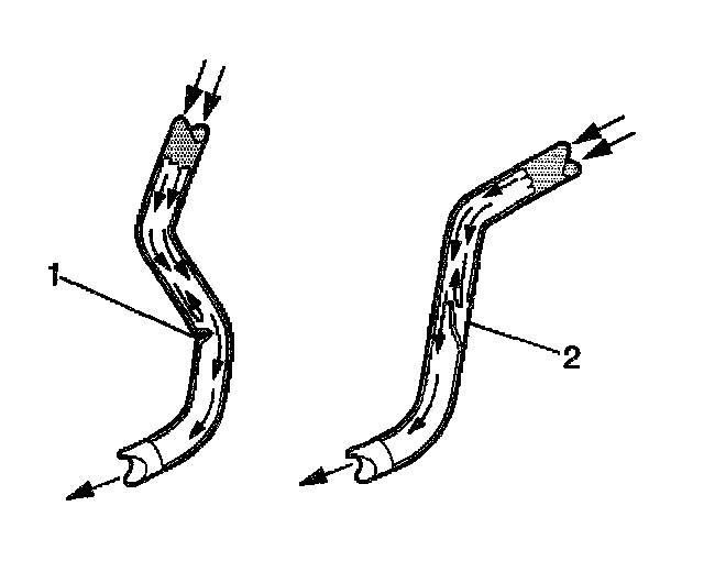 6. Squeeze the flexible brake hoses with firm finger pressure to check for soft spots (2), indicating an internal restriction; check the entire length of each flexible brake hose.