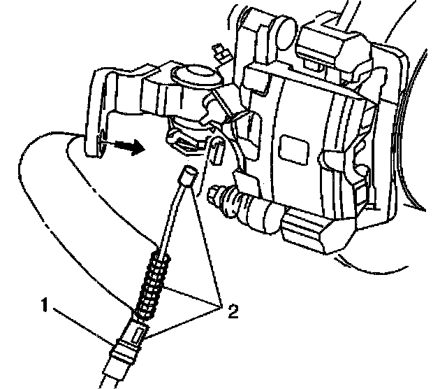 7. Install the left and/or the right park brake cable (1) to the caliper support brackets.