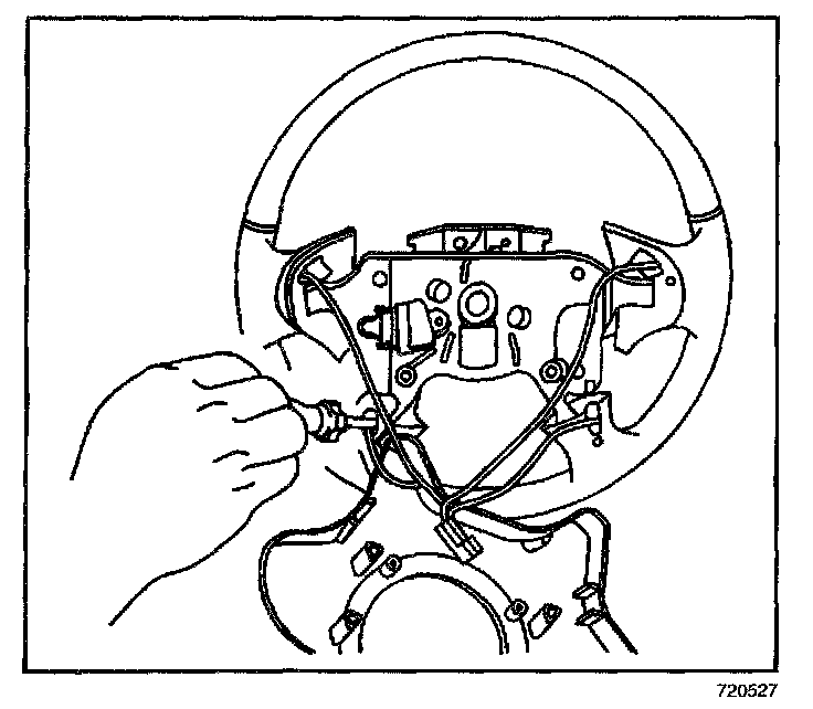 5. Insert a small, blunt ended tool into the access hole in the back of the steering wheel in order to push the switch out of the steering wheel.