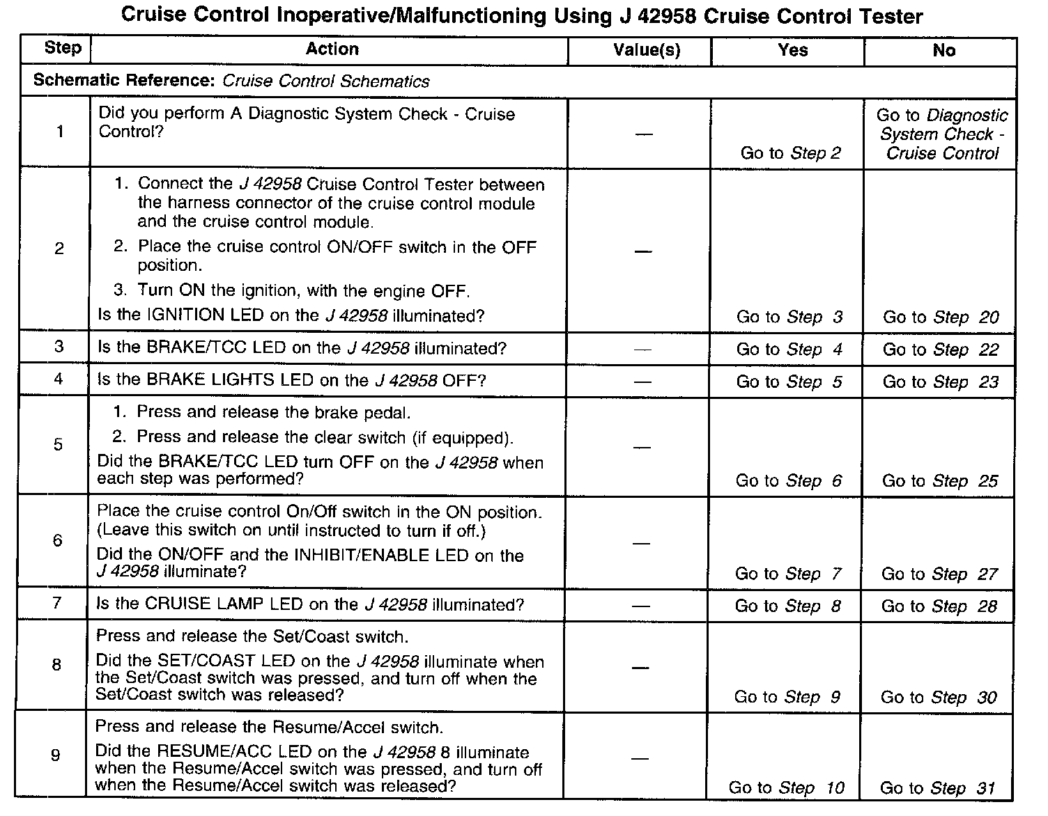 The PCM will inhibit (not allow) cruise control if one or more of the following has occurred: